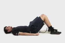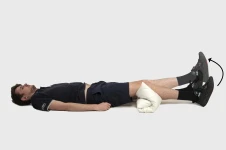 Lie flat on the floor. Place a firm roll under your knee. For example, 1 or 2 rolled up towels. Lift your heel off the floor or bed to straighten your leg. Your toes should point up to the ceiling. Hold the position for 3 to 5 seconds then slowly lower.
