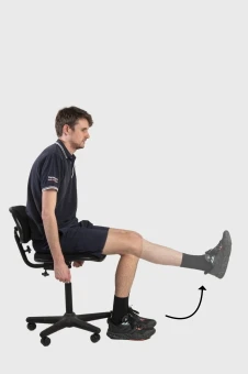 Sit on the side of the bed or on a chair with your feet flat on the ground. Straighten your leg out in front of you as far as you can. Hold for 3 to 5 seconds as you are able, then slowly lower.